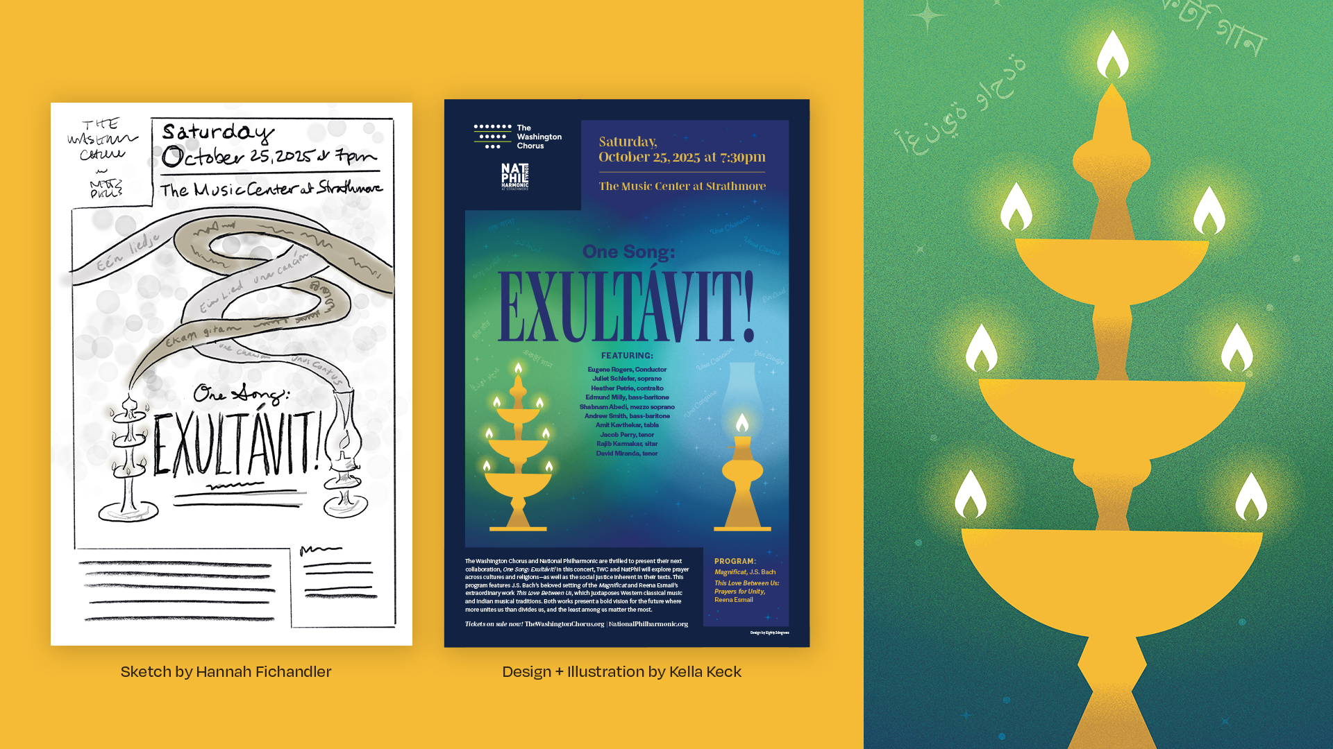 As a part of several concert series, I illustrated and designed the Elijah Reimagined, Stand the Storm, One Song: Exultávit! posters and also the 24/25 postcard. Each season’s series featured custom illustrations and distinct visual narratives, unified by consistent typography, color, and layout systems that gave the concerts a recognizable yet flexible identity.
